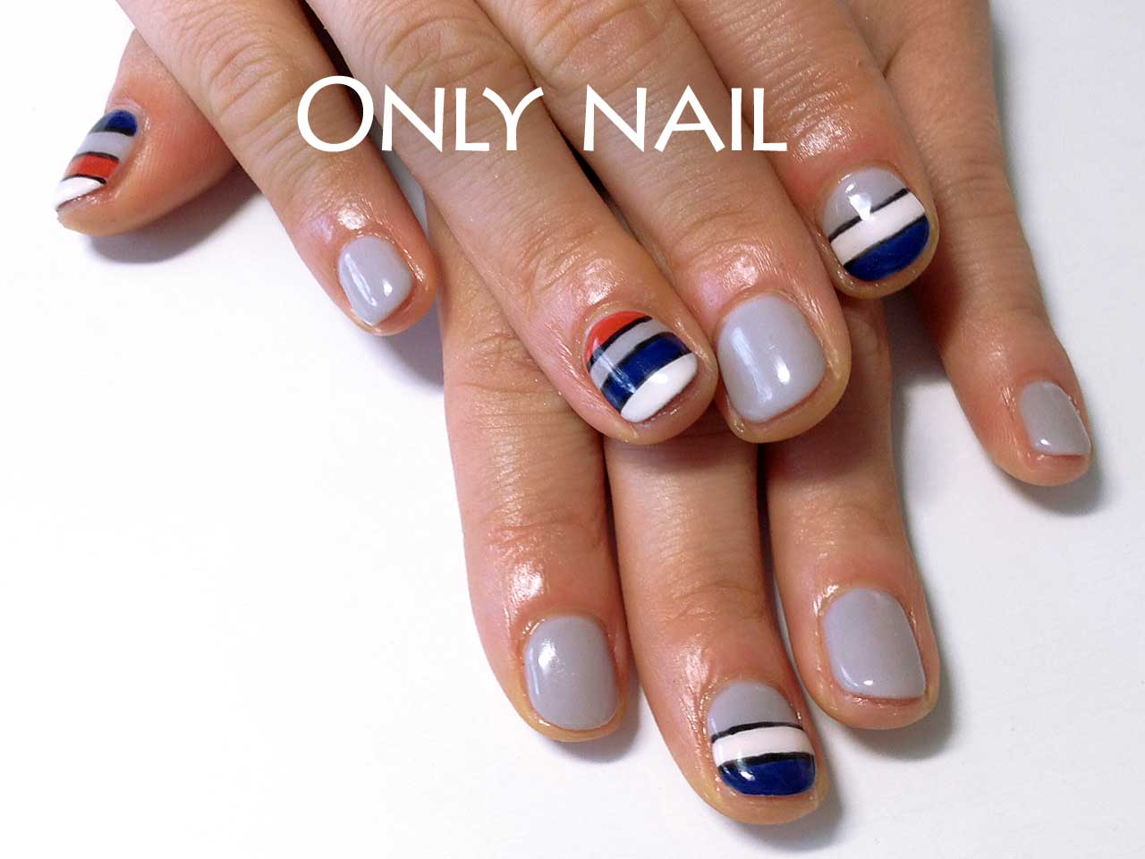 (コース)おしゃれネイル・・・3,500円 (デザイン)ボーダー、トリコロール (色)グレー
